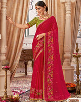 Vishal Prints Shiraz Pink Designer Patterned Chiffon Saree With Embroidery-Diamond Work And Border