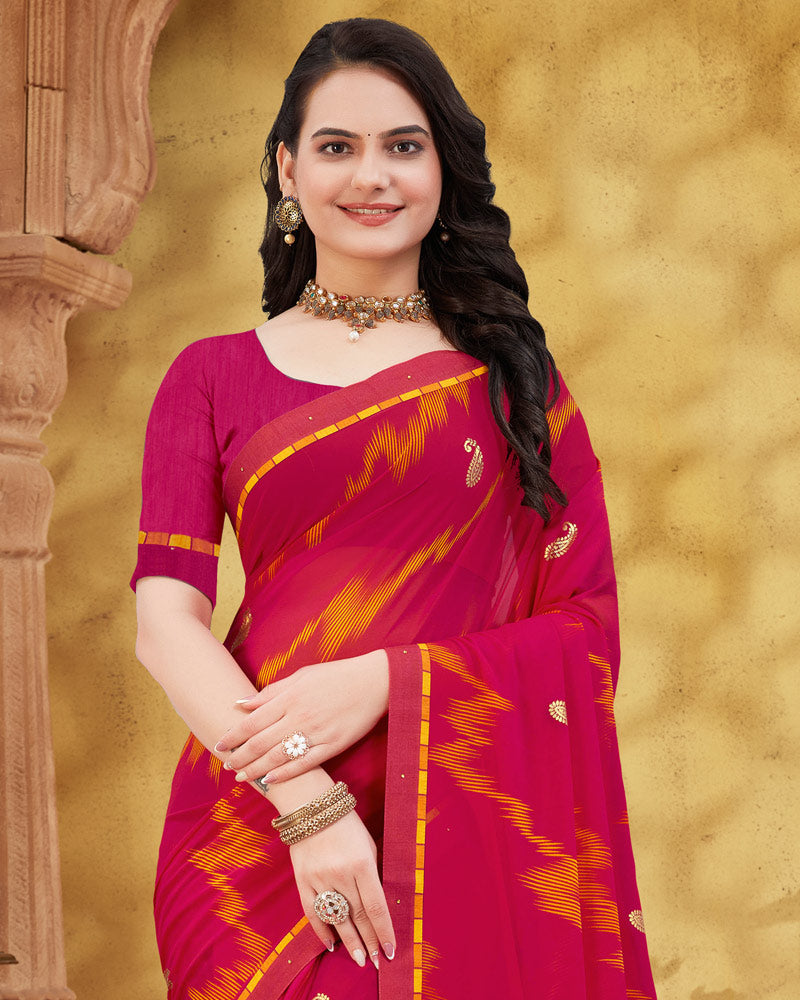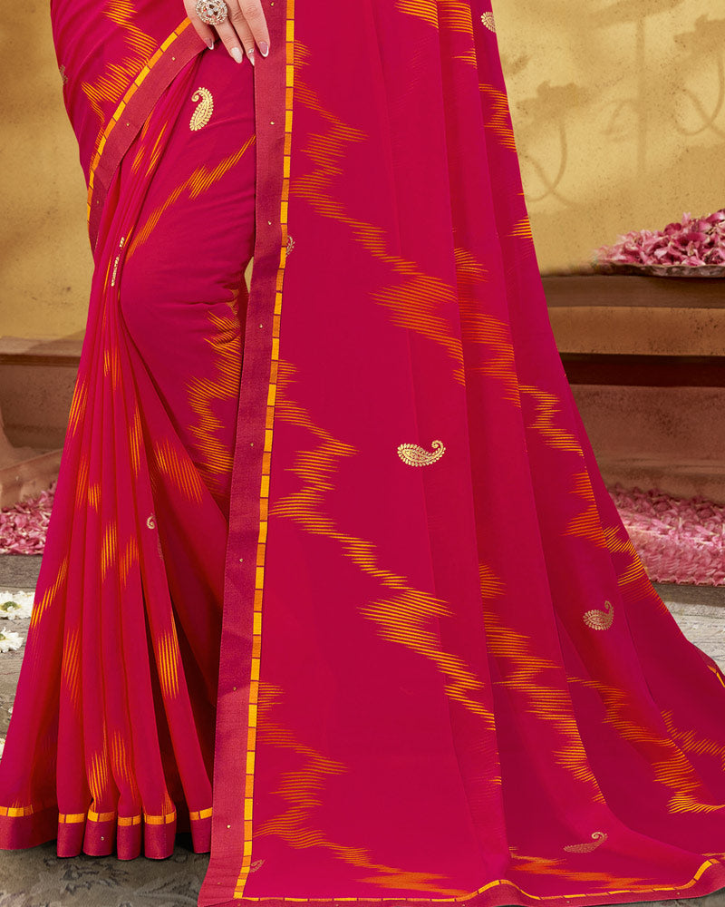 Vishal Prints Shiraz Pink Printed Georgette Saree With Foil Print And Fancy Border