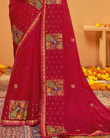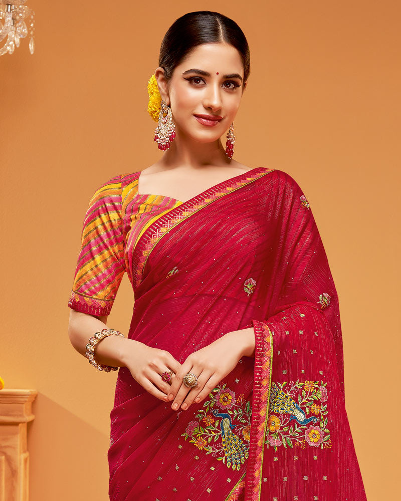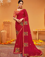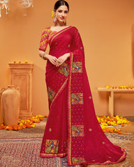 Vishal Prints Shiraz Red Designer Chiffon Saree With Embroidery-Diamond Work And Fancy Border