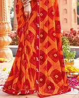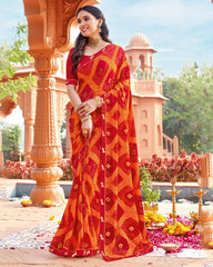 Vishal Prints Shiraz Red Printed Georgette Saree With Fancy Border