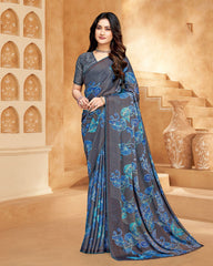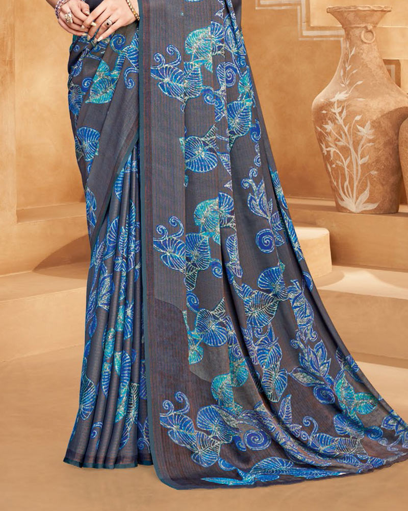 Vishal Prints Shuttle Grey Digital Print Criva-Brasso Saree