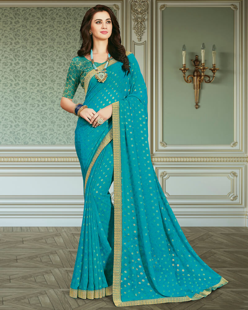 Vishal Prints Sky Blue Georgette Saree With Foil Print And Jari Border