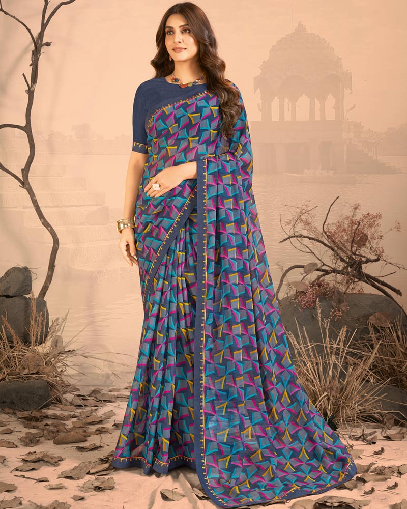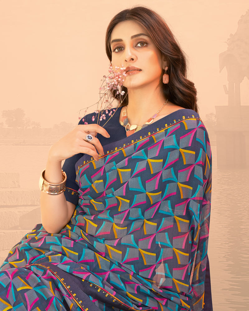 Vishal Prints Slate Grey Printed Chiffon Saree With Fancy Border