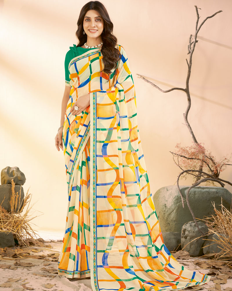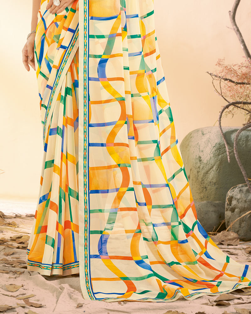 Vishal Prints Spanish Cream Printed Georgette Saree With Fancy Border