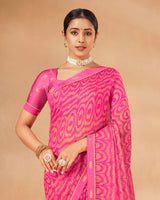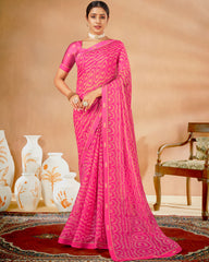Vishal Prints Strawberry Pink Printed Chiffon Saree With Fancy Border