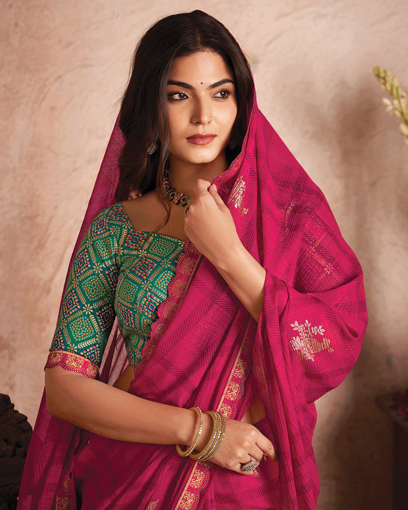 Vishal Prints Strawberry Printed Luxury Chiffon Saree With Foil Print And Cut Work Embroidery Border