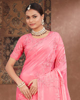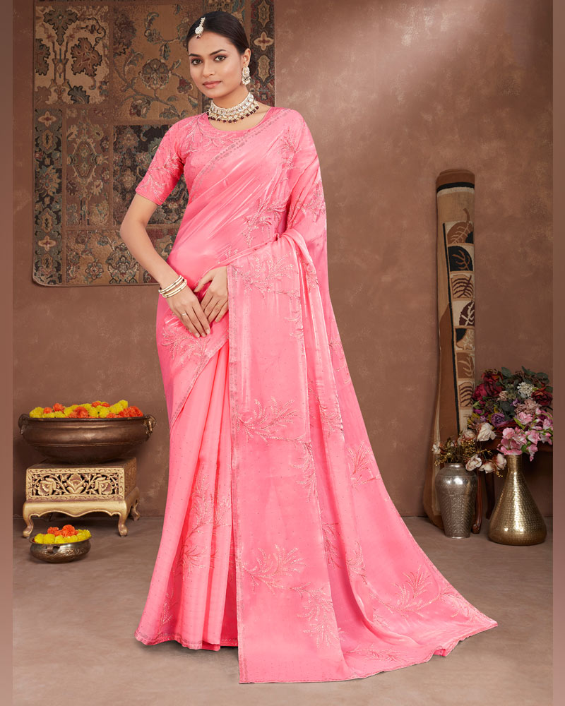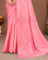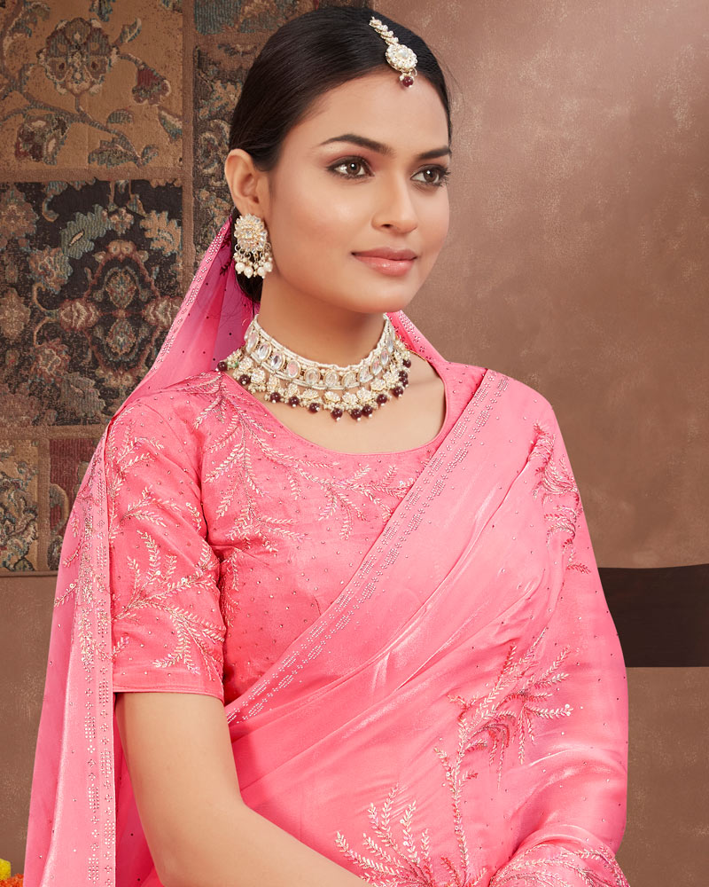 Vishal Prints Sundown Pink Designer Organza Saree With Embroidery Diamond Work And Core Piping