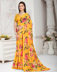Vishal Prints Sunglow Yellow Patterned Chiffon Digital Print Saree With Fancy Border
