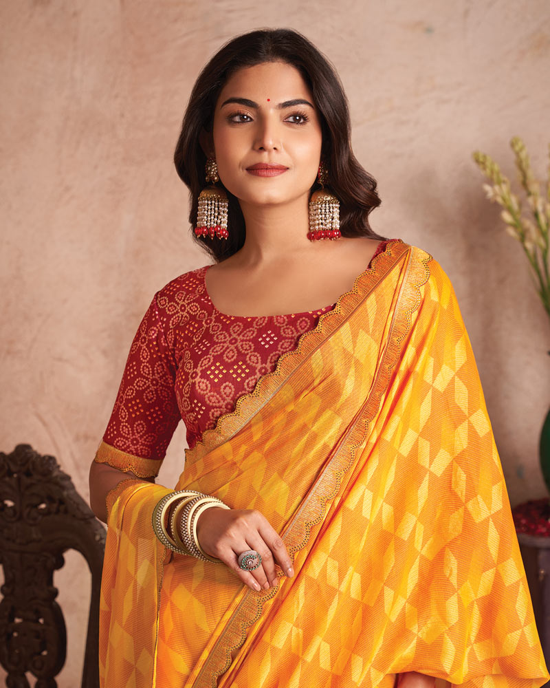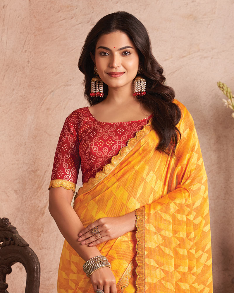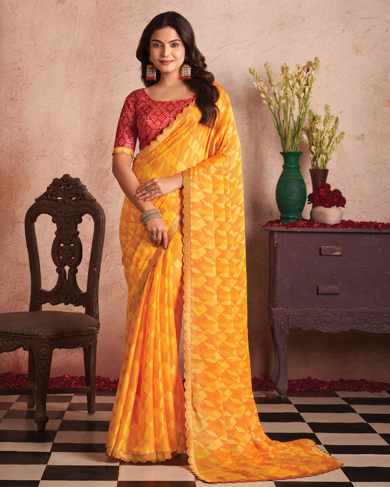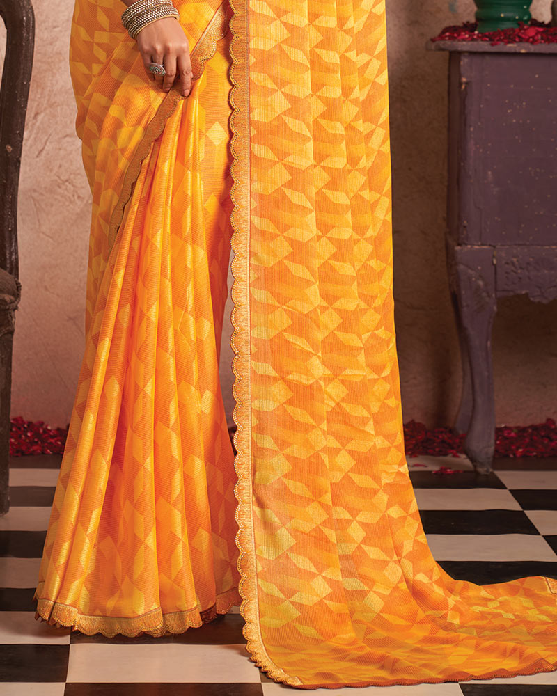 Vishal Prints Sunshine Orange Printed Fancy Brasso Saree With Cut Work Border