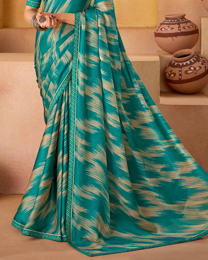 Vishal Prints Surfie Green Printed Fancy Chiffon Saree With Border