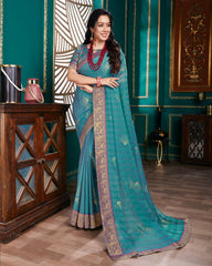 Vishal Prints Teal Blue Chiffon Saree With Foil Print And Jari Border