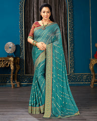 Vishal Prints Teal Blue Chiffon Saree With Foil Print And Jari Border