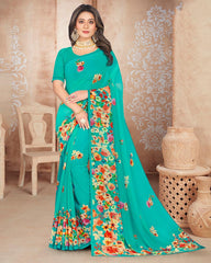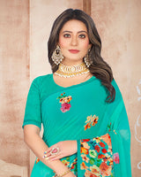 Vishal Prints Teal Blue Digital Print Georgette Saree