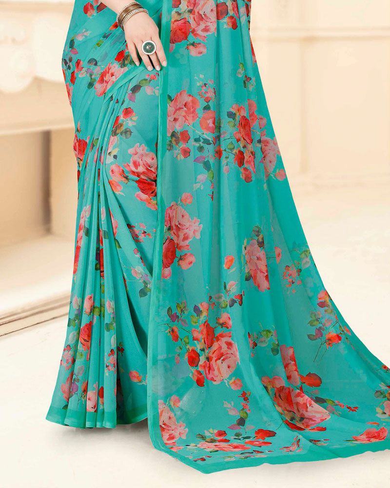 Vishal Prints Teal Green Digital Print Georgette Saree