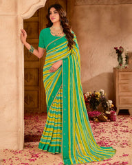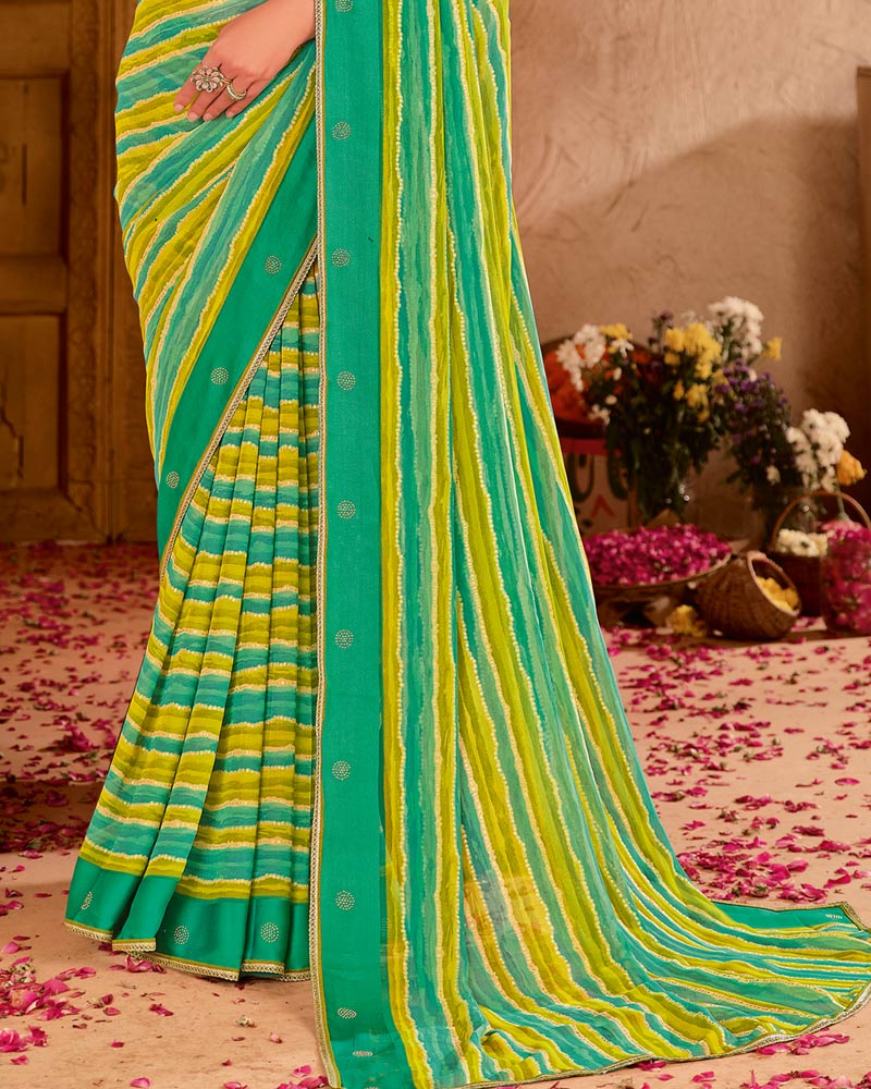 Vishal Prints Teal Green Printed Chiffon Saree With Fancy Gota Patti Border