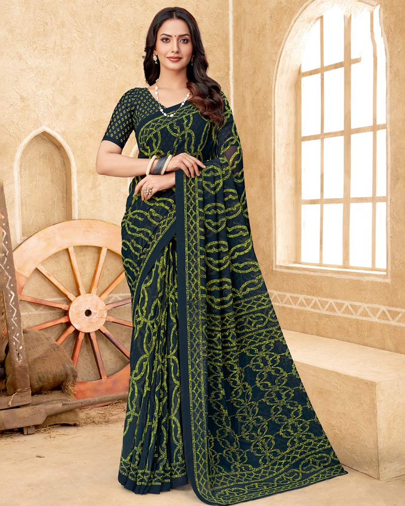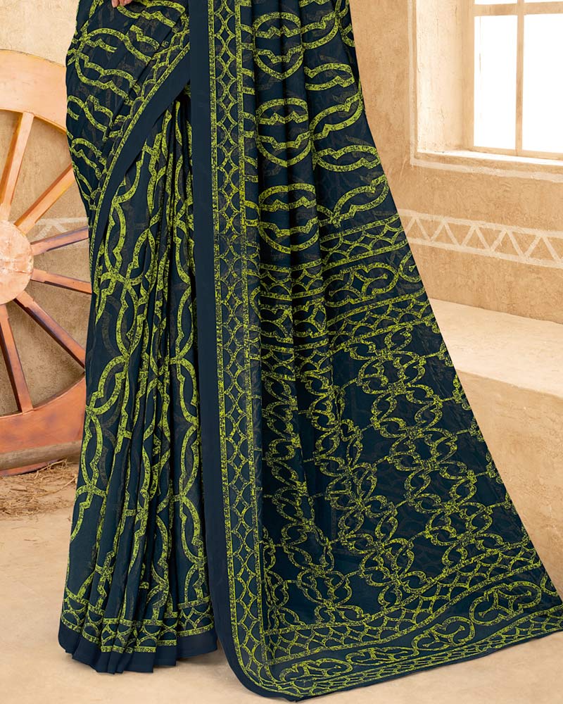 Vishal Prints Timber Green Printed Georgette Saree