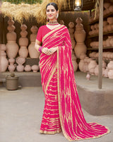 Vishal Prints Tomato Pink Georgette Printed Saree With Fancy Border