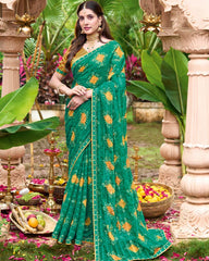 Vishal Prints Tropical Green Printed Chiffon Bandhani Print Saree With Foil Print And Fancy Border