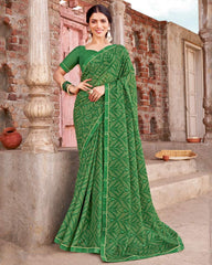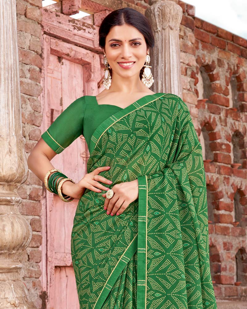 Vishal Prints Tropical Green Printed Criva Crepe Saree With Fancy Border