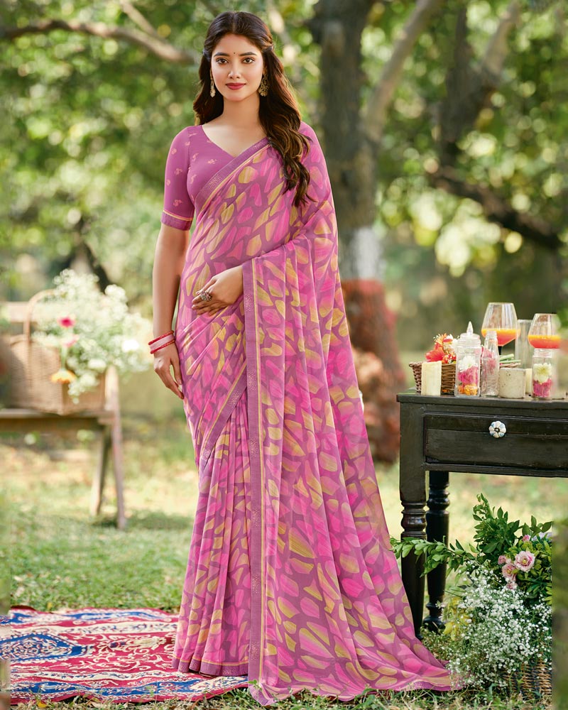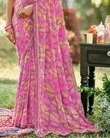 Vishal Prints Tulip Pink Printed Georgette Saree With Fancy Border