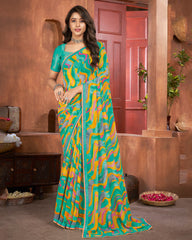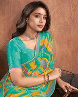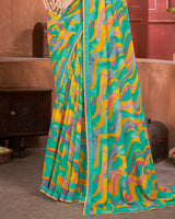 Vishal Prints Turquoise Blue Printed Georgette Saree With Fancy Border