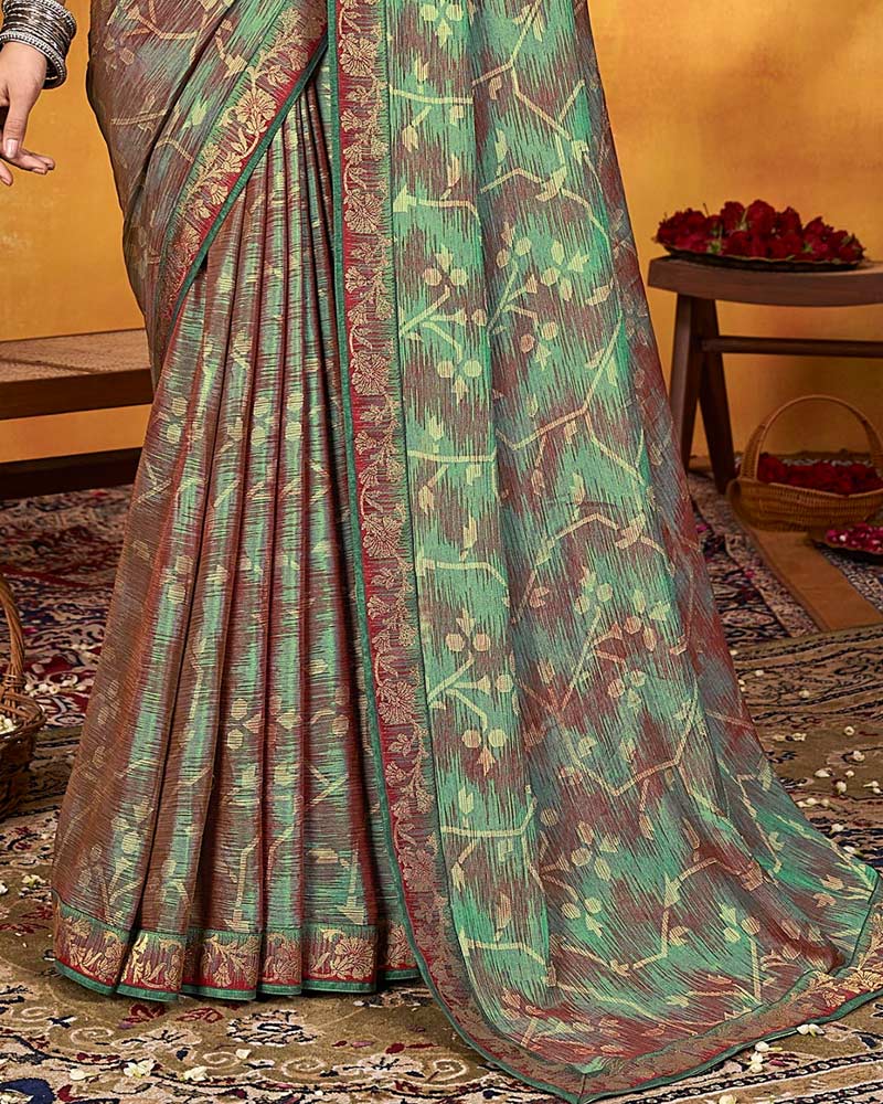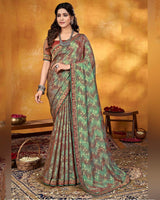 Vishal Prints Turquoise Green Brasso Saree With Zari Border