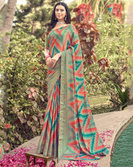 Vishal Prints Turquoise Green Printed Fancy Chiffon Saree With Core Piping