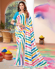 Vishal Prints White And Ocean Blue Printed Georgette Saree With Fancy Border