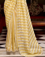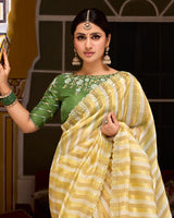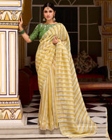 Vishal Prints White Gold Designer Crushed Tissue Saree With Diamond Work And Cut Work Embroidery Border