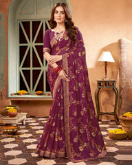 Vishal Prints Wine Printed Brasso Saree With Foil Print And Fancy Border