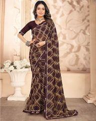 Vishal Prints Woody Brown Printed Georgette Saree With Fancy Border
