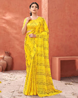 Vishal Prints Yellow Designer Fancy Chiffon Saree With Diamond Work And Core Piping