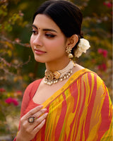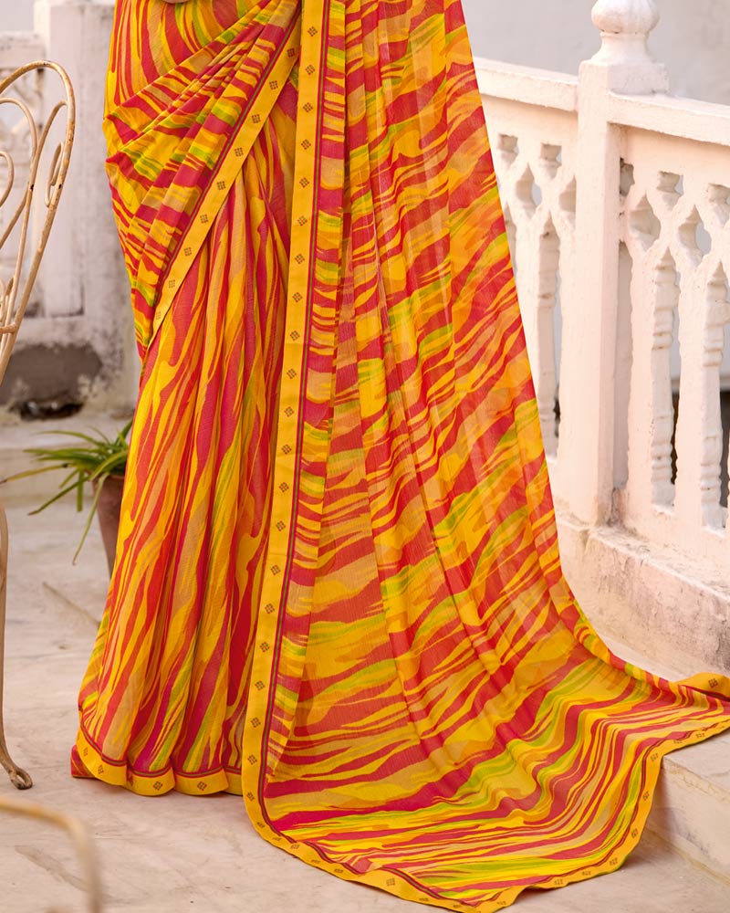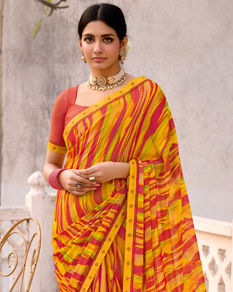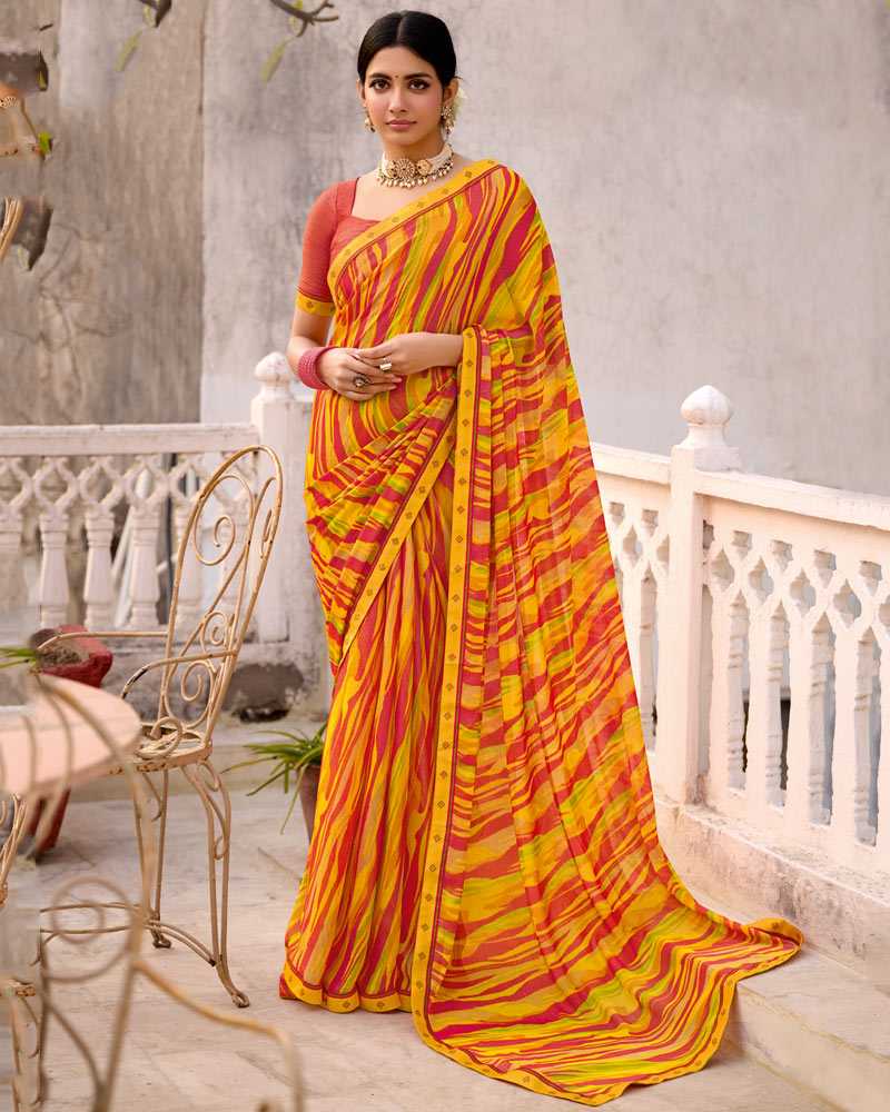 Vishal Prints Yellow Orange Printed Brasso Saree With Fancy Border
