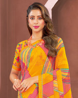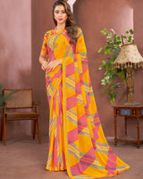 Vishal Prints Yellow Printed Georgette Saree With Fancy Border