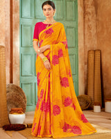 Vishal Prints Yellowish Orange Printed Patterned Chiffon Saree With Fancy Border
